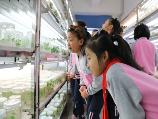 在林木遗传育种国家重点实验室相关工作人员的引导下,学生们听取了“走进神秘的基因世界”知识讲座,之后进入植物显微平台,观察植物的微观世界。同学们对组培室、养苗室及大型仪器平台进行参观学习,他们对植物无菌生长环境、植物微观形态非常感兴趣,提出各类问题,相关教师认真给孩子们作了解答。