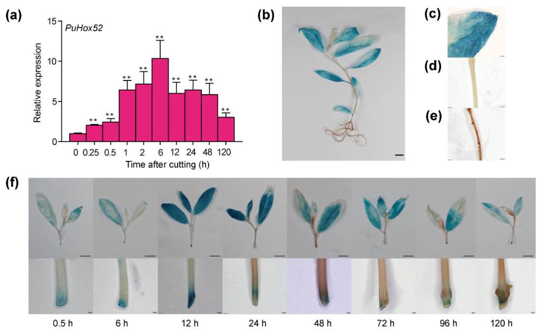 图1. PuHox52在大青杨不定根形成过程中响应创伤信号并被显著诱导
