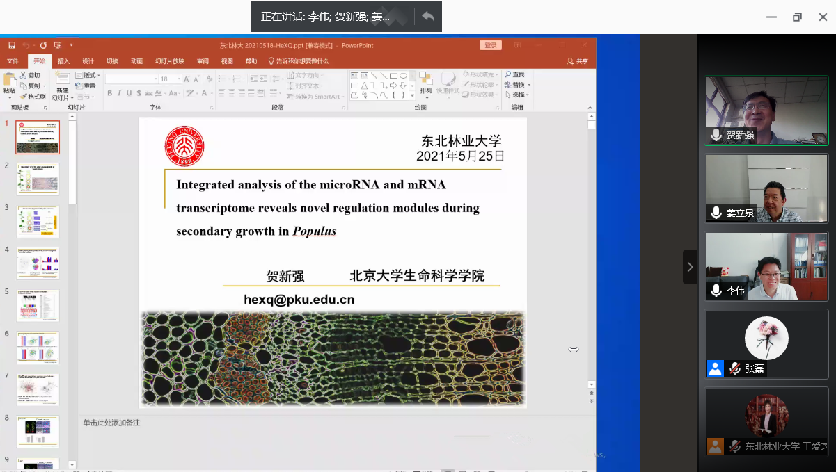 5月25日,应林木遗传育种国家重点实验室多组学整合分析干细胞调控林木生长与适应的机制研究组邀请,北京大学生命科学学院贺新强教授通过腾讯会议与重点实验室的师生进行了线上学术交流。本次交流活动由姜立泉教授主持。