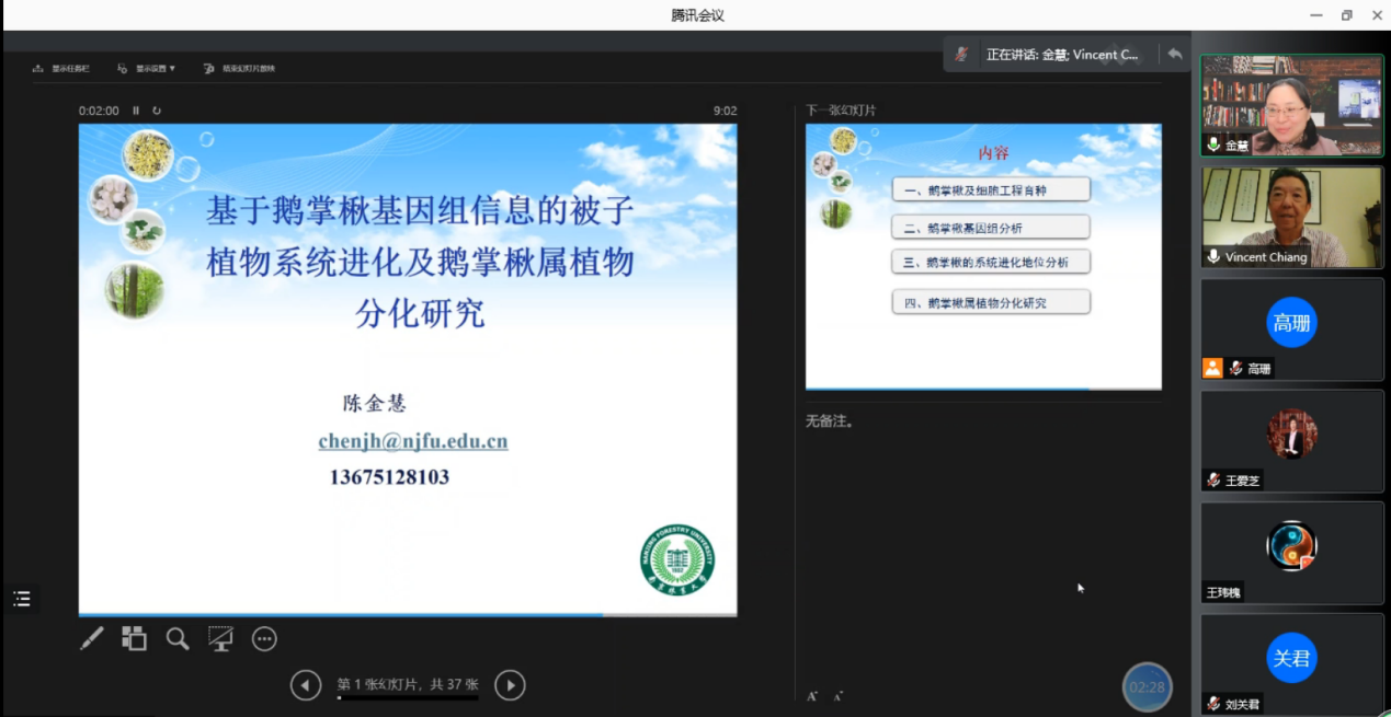 10月21日,应林木遗传育种国家重点实验室林木木材形成与环境适应研究组邀请,南京林业大学陈金慧教授通过腾讯会议与重点实验室的师生进行了线上学术交流。本次交流活动由姜立泉教授主持。