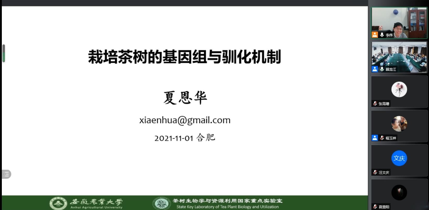 11月1日,林木遗传育种国家重点实验室(东北林业大学)和安徽农业大学茶树生物学与资源利用国家重点实验室联合举办的“木本植物生物学和基因组学前沿进展”学术报告会暨林木遗传育种国家重点实验室第三十四期龙江林学论坛通过腾讯会议线上召开。本次交流活动由茶树生物学与资源利用国家重点实验室韦朝领教授及林木遗传育种国家重点实验室李伟教授主持。