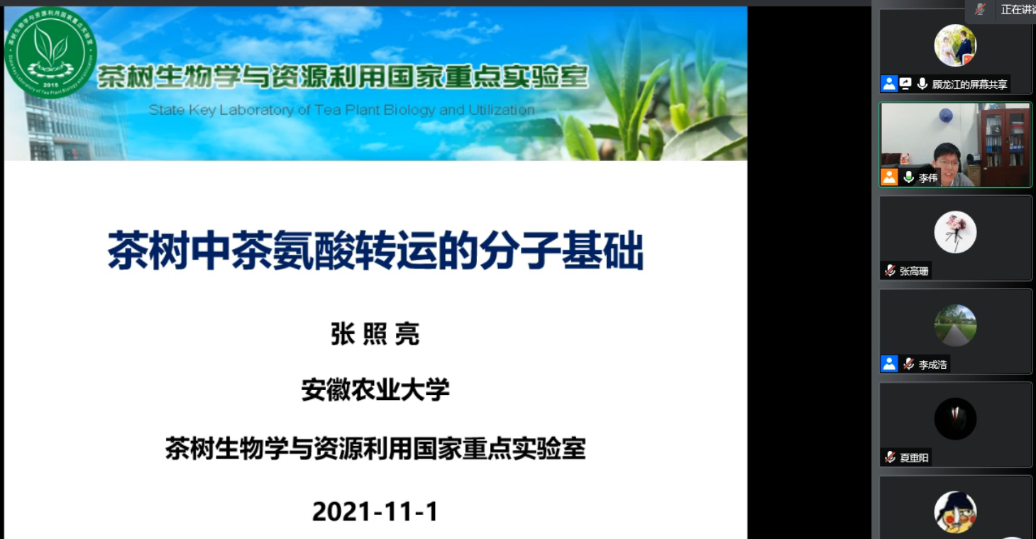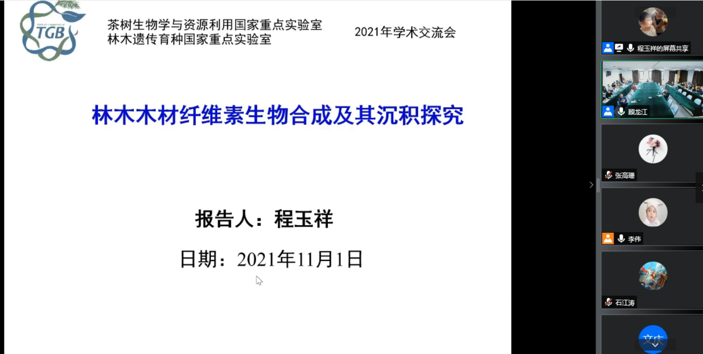 茶树生物学与资源利用国家重点实验室的夏恩华教授、张照亮教授分别做了题为“栽培茶树的基因组与驯化机制”和“茶树中茶氨酸代谢与转运的分子机制”的学术报告。林木遗传育种国家重点实验室的程玉祥教授、李成浩教授分别做了题为“林木木材纤维素生物合成及其沉积探究”和“大青杨根系响应干旱和氮磷亏缺的分子机制研究”的学术报告。4位专家分别结合近年来本人及团队的研究经历,和大家一起分享了近期的科研成果,并与参会师生就双方感兴趣的研究内容进行了深入交流与讨论。