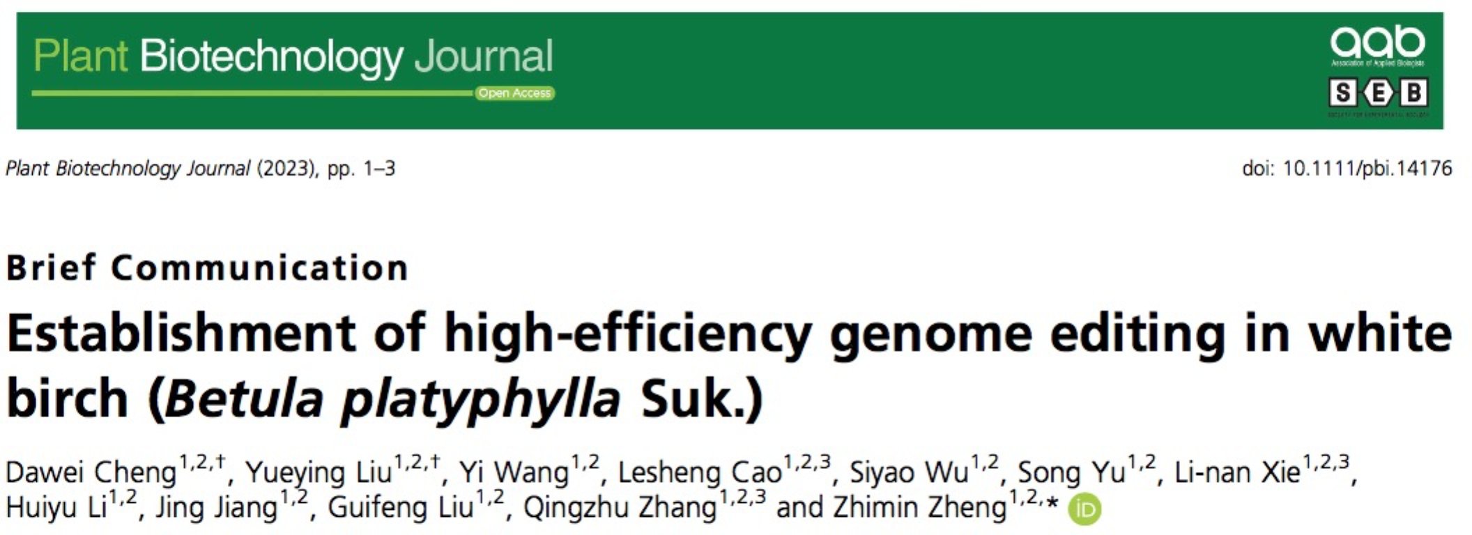 东北林业大学林学院林木遗传育种学科2020级硕士研究生程大伟和在站博士后刘月影为该论文第一作者,郑志民教授为该论文通讯作者。该研究得到国家重点研发计划“林木良种高效基因编辑技术研究 (2021YFD2200102)”的资助。