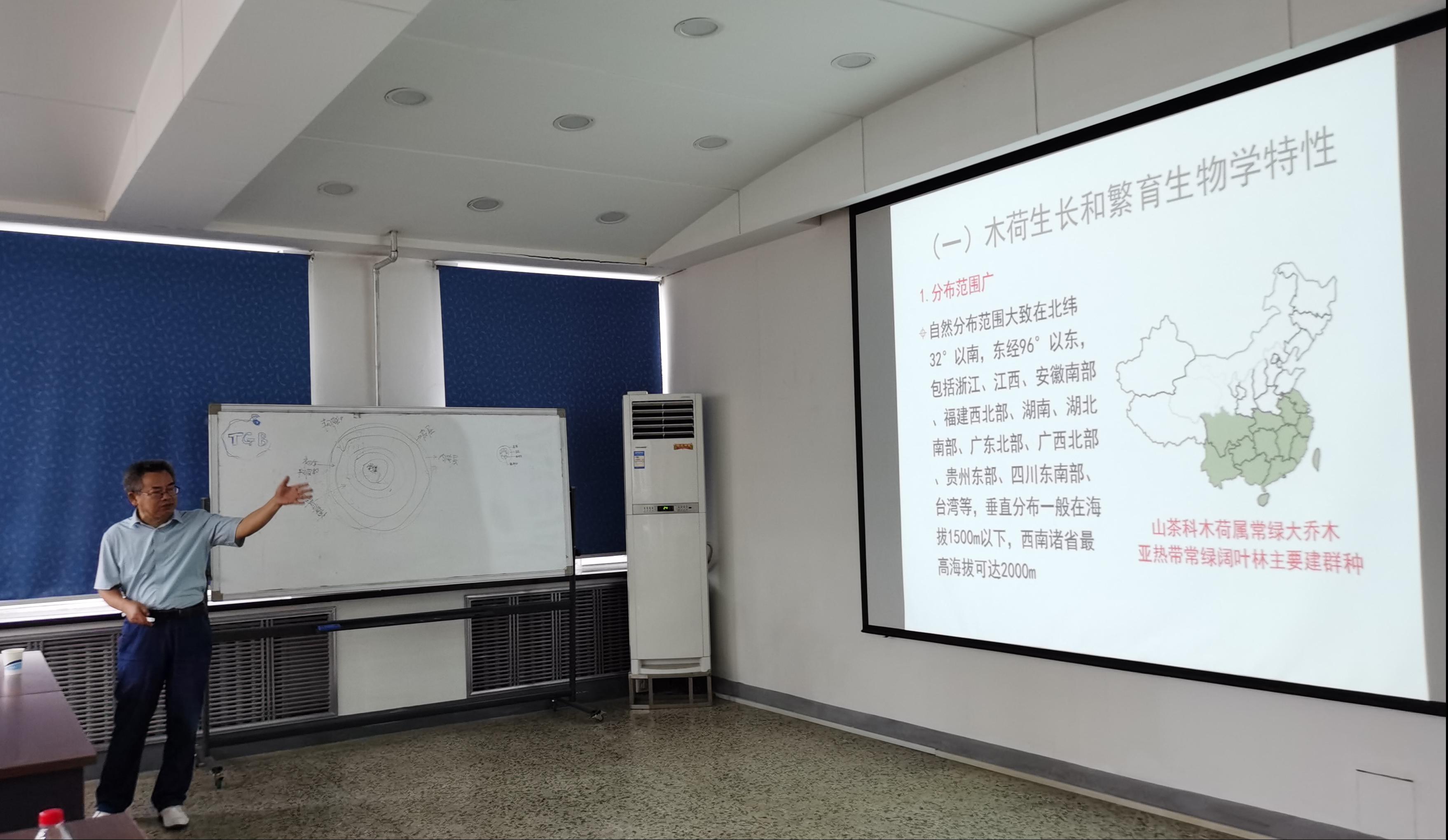 周志春研究员作了题为“木荷新品种选育进展及对当前林木育种方案的思考”的学术报告,报告介绍了中国林科院亚林所林木遗传育种与培育团队20年来在木荷生长和繁育生物学特性、优良种源选择与应用、木荷育种亲本选择和核心种质构建、生长和形质性状遗传变异和新品种选育、无性系种子园营建和良种生产及应用等方面的研究进展。同时,周志春研究员就当前林木育种方案的思考,以及南方速生林木新品种选育的研究重点和思路等与实验室师生进行了深入交流和讨论。