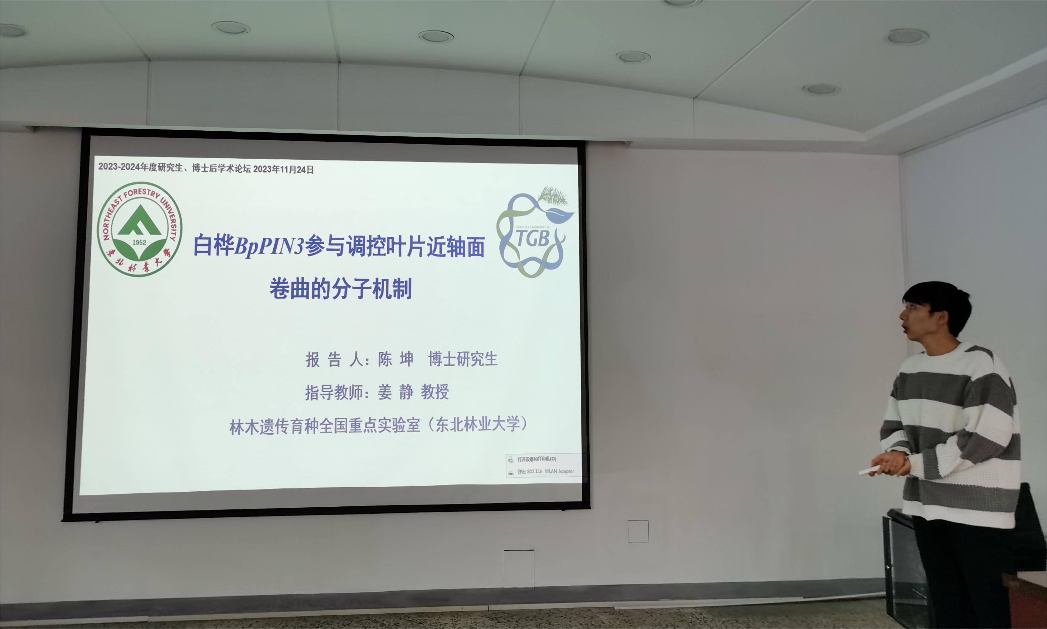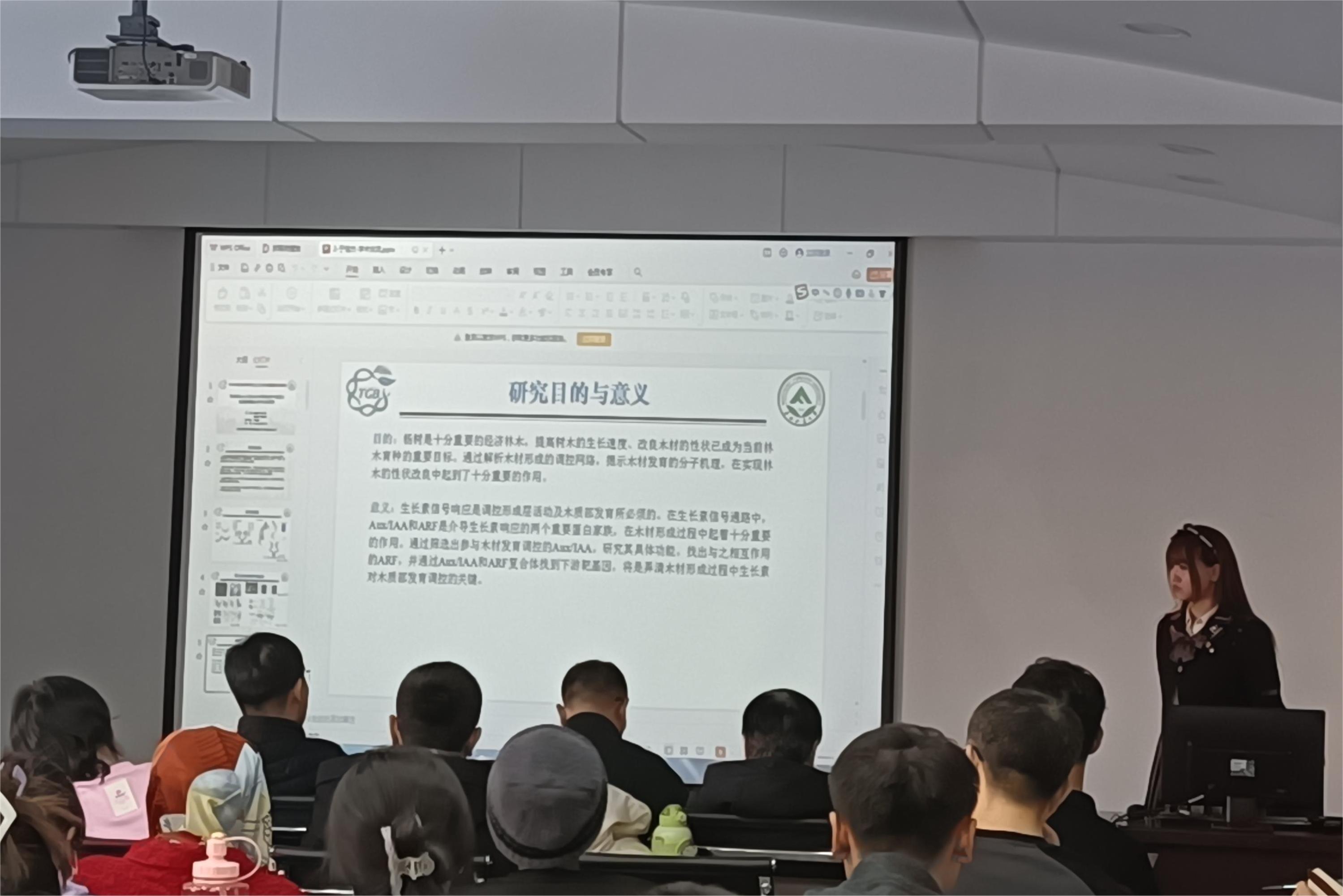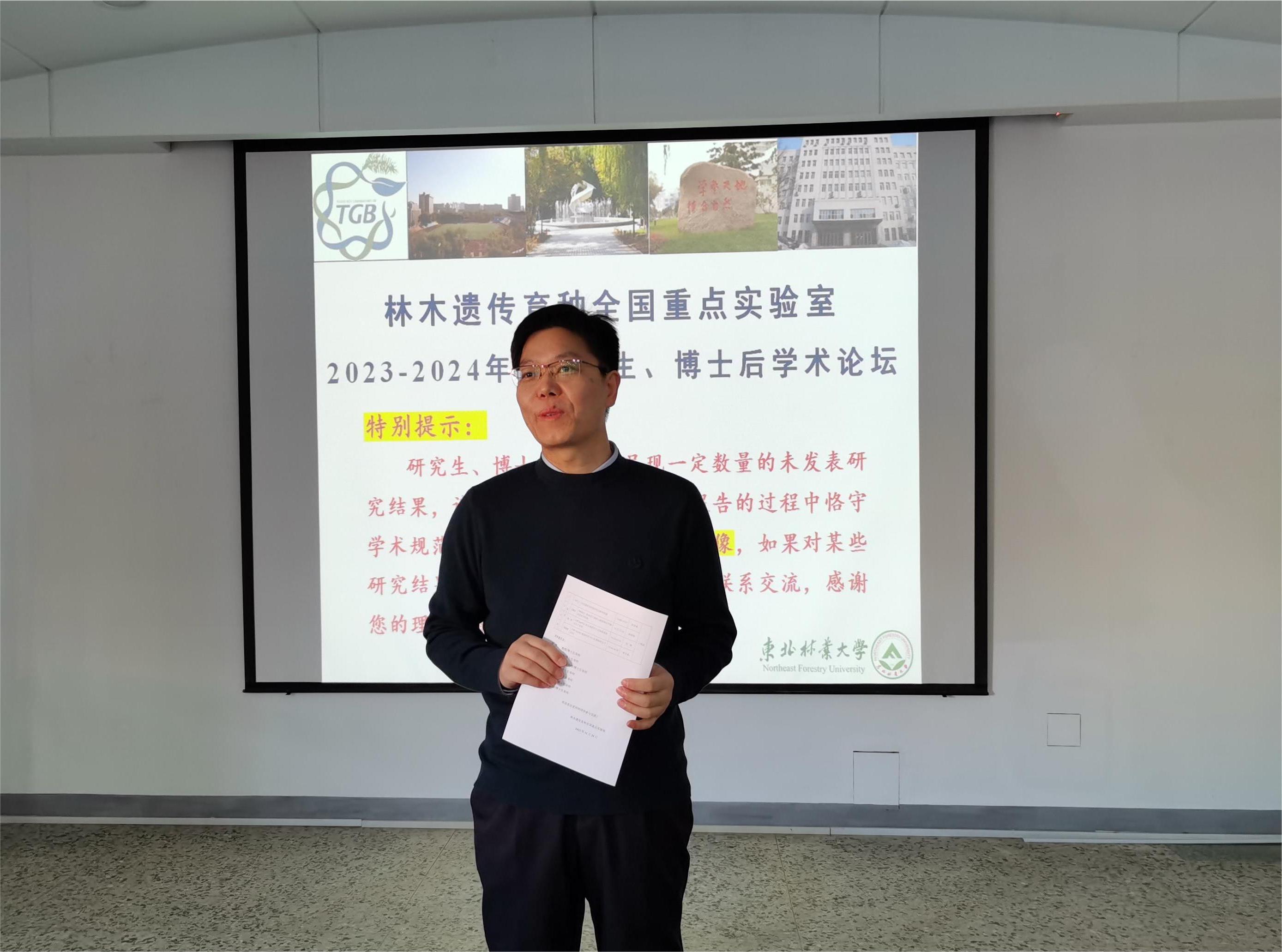 11月24日,林木遗传育种全国重点实验室2023-2024年度研究生、博士后学术论坛在科技楼主310召开,论坛由实验室林木抗逆与微生物研究组组长牛犇教授主持。