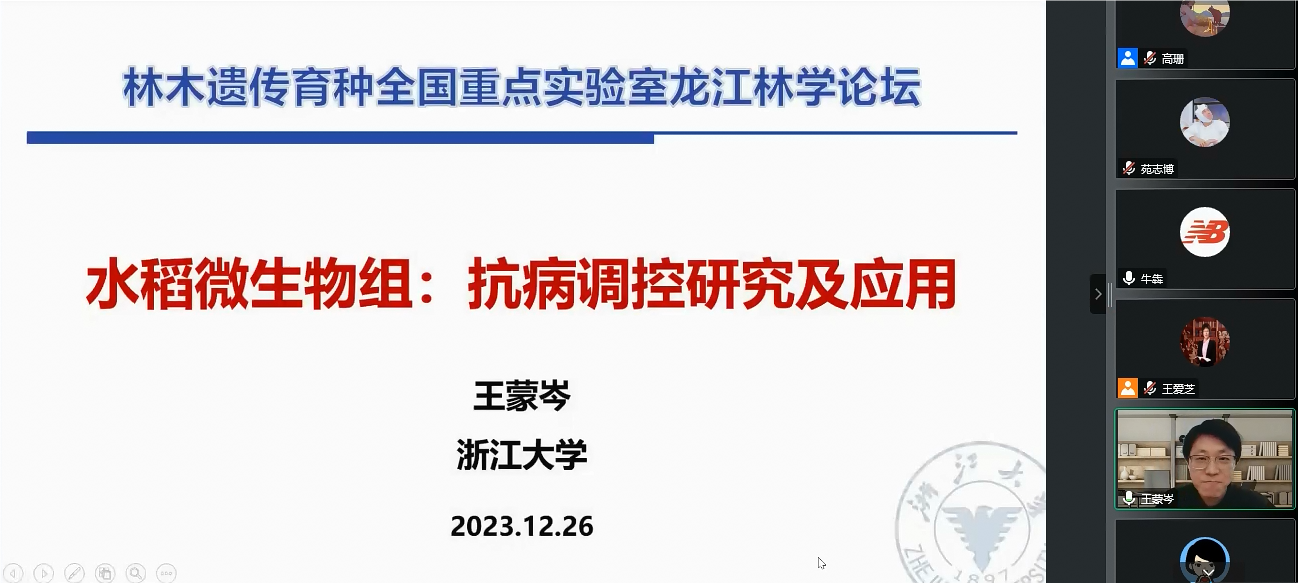 12月26日,应林木遗传育种全国重点实验室林木抗逆与环境适应的分子基础研究组邀请,浙江大学农药与环境毒理研究所所长王蒙岑教授与重点实验室师生进行了学术交流。本次交流活动由牛犇教授主持。