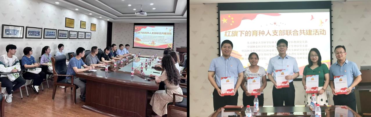 为深入学习贯彻习近平新时代中国特色社会主义思想,践行生态文明建设主张,秉承“红色引领,绿色发展”建设理念,东北林业大学林学院林木遗传育种学科教师党支部、中国林业科学研究院林业研究所分子生物学党支部、林木遗传育种党支部、北京林业大学生物科学与技术学院林木遗传育种党支部、南京林业大学林学院林木遗传育种党支部于2023年7月30日在东北林业大学科技楼西310会议室召开了“红旗下的育种人支部联合共建活动”。